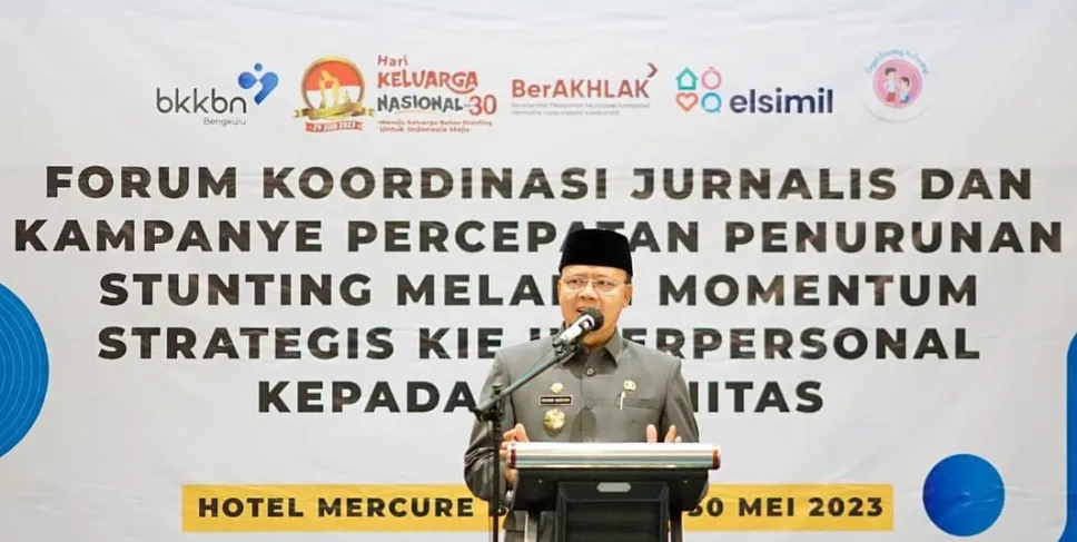 Gubernur Bengkulu Rohidin Mersyah saat membuka Forum Koordinasi Jurnalis dan Kampanye Percepatan Penurunan Stunting melalui KIE Komunitas, Selasa (30/5/2023), menyebutkan bahwa angka stunting di atas masih sangat menghawatirkan.