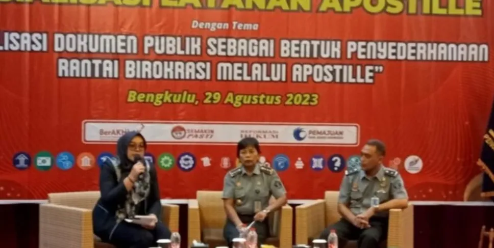 Bengkulu, Siberbengkulu.co -- Kementerian Hukum dan Hak Asasi Manusia (Kemenkumham) Bengkulu menggelar Sosialisasi Layanan Apostille pada Selasa, 29 Agustus 2023 bertempat disalah satu hotel berbintang di Kota Bengkulu.