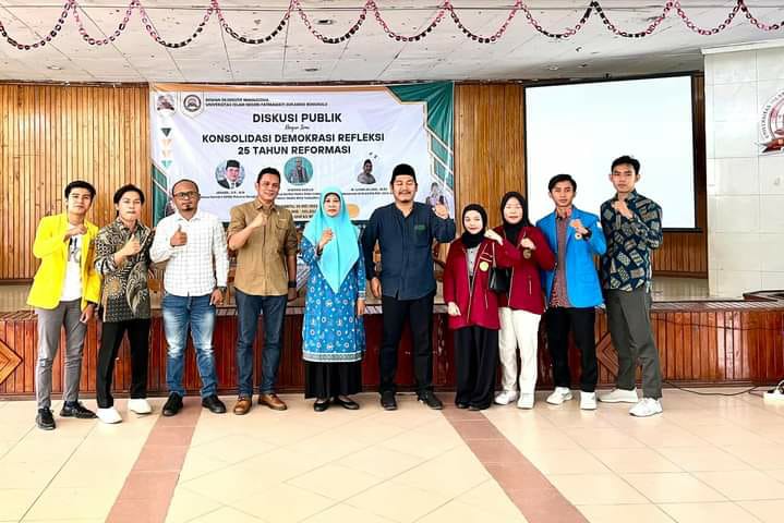 Provinsi Bengkulu, Jonaidi, SP, menjadi narasumber Diskusi Publik di Kampus Universitas Islam Negri Fatmawati Sukarno (UINFAS) Bengkulu dengan tema “Konsolidasi Demokrasi Refleksi 25 Tahun Demokrasi”. Acara tersebut berlangsung di Gedung Audit Kampus UINFAS Bengkulu itu sendiri. Sabtu pagi (20/05/2023).