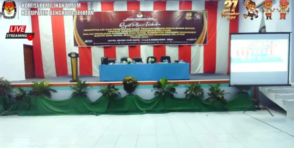Bengkulu Selatan, Siberbengkulu.co -- Komisi Pemilihan Umum (KPU) Kabupaten Bengkulu Selatan telah melaksanakan Rapat Pleno Terbuka Rekapitulasi Hasil Perolehan Suara Pemilihan Kepala Daerah (Pilkada) Serentak 2024 tingkat Kabupaten di Bengkulu Selatan. Rapat pleno ini berlangsung pada Rabu (04/12) lalu, dimulai pukul 08.00 WIB hingga 17.30 WIB, bertempat di sebuah hotel di kawasan Kota Manna.