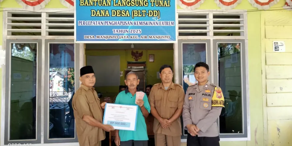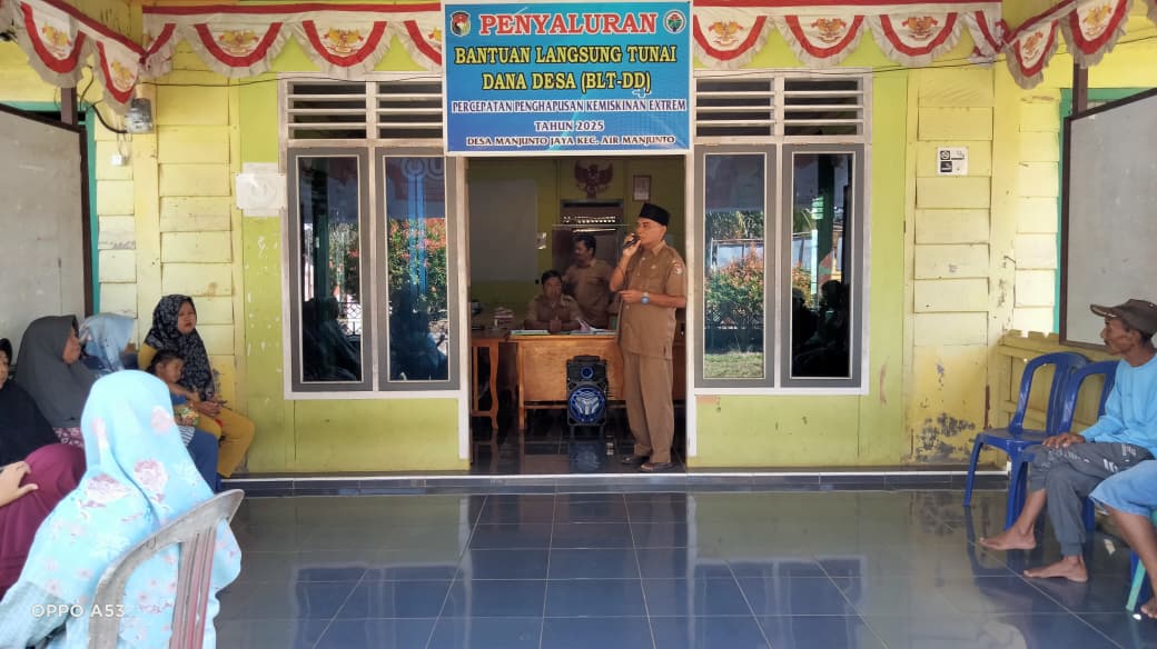 Mukomuko, Siberbengkulu.com - Pemerintah Desa Manjuto Jaya, Kecamatan Air Manjuto, Kabupaten Mukomuko menyalurkan Bantuan Langsung Tunai Dana Desa (BLT DD) kepada 20 Keluarga Penerima Manfaat (KPM), Selasa (19/8/2025). Kegiatan berlangsung di kantor desa setempat dengan suasana tertib dan lancar.