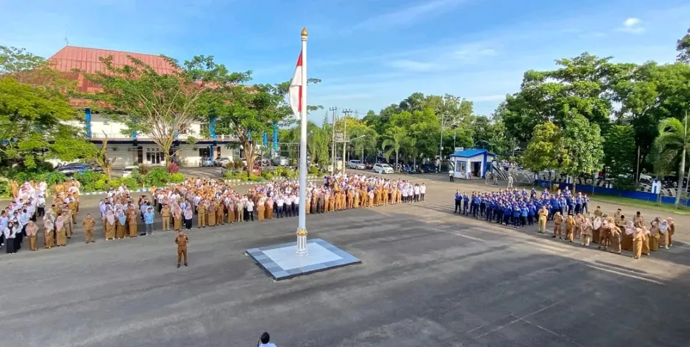 Kota Bengkulu, Siberbengkulu.co -- Pemerintah Kota (Pemkot) Bengkulu menggelar apel gabungan di halaman Kantor Walikota, Bentiring, Selasa (11/2/25). Apel ini dipimpin langsung oleh Penjabat (Pj) Walikota Bengkulu, Arif Gunadi, dan dihadiri oleh para pejabat eselon II, III, IV serta seluruh jajaran Pemkot Bengkulu.