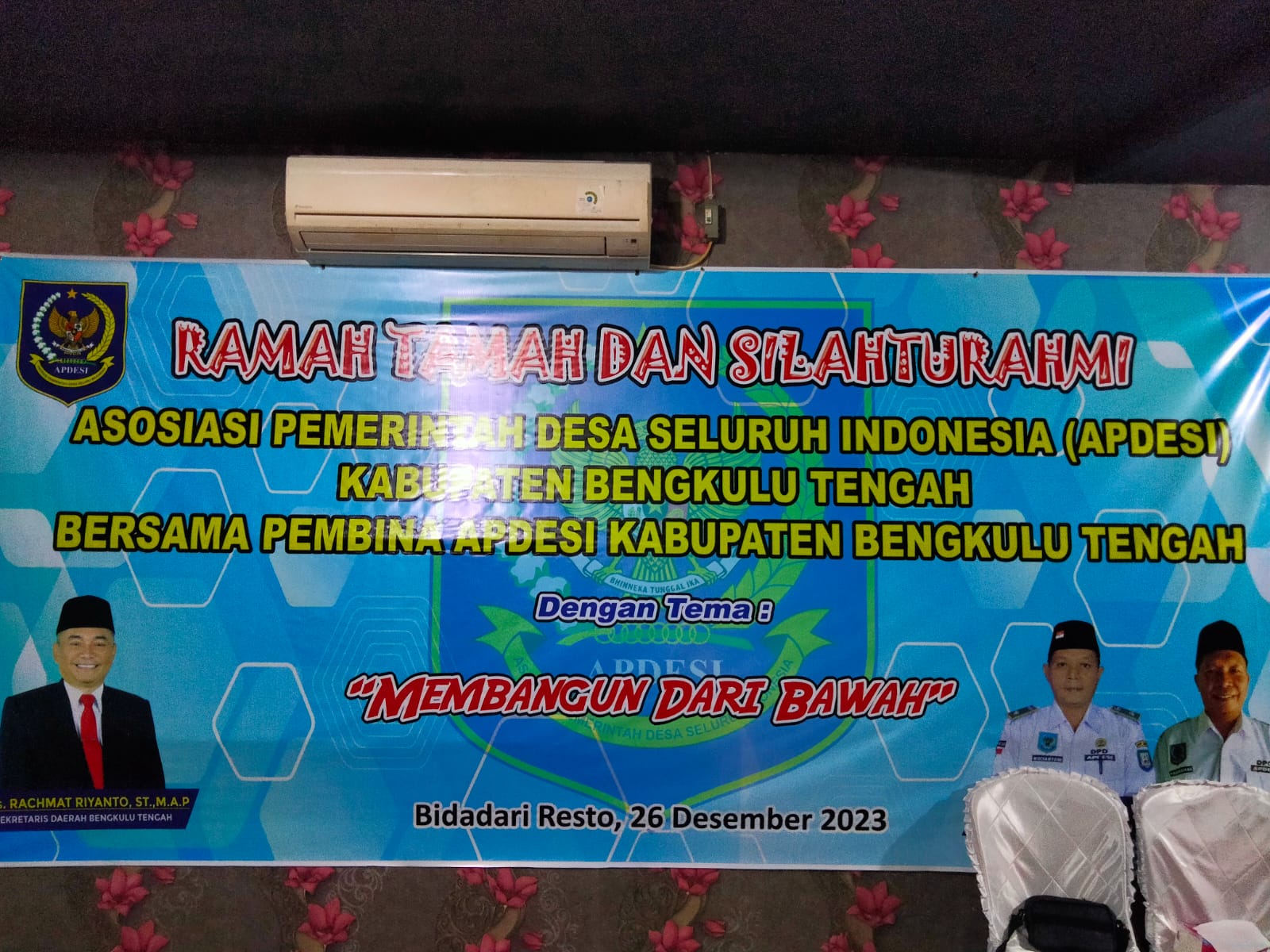 Bengkulu Tengah, Siber Bengkulu.co -- Kegiatan ramah tamah dan silaturahmi Asosiasi Pemerintah Desa Seluruh Indonesia (APDESI) Se-Kabupaten Bengkulu Tengah dengan tema membangun dari bawah yang digelar di hotel Bidadari Pantai Panjang Bengkulu, Selasa (26/12/2023).