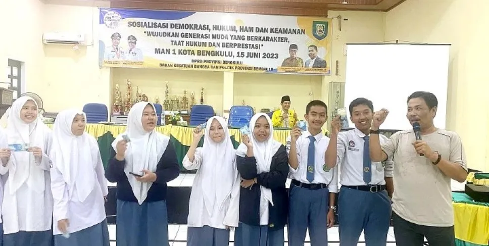 Usai memberikan materi, Usin Sembiring mengucapkan terima kasih kepada Kesbangpol Provinsi Bengkulu, pihak sekolah MAN 1 Kota Bengkulu dan para dewan guru serta siswa yang hadir.