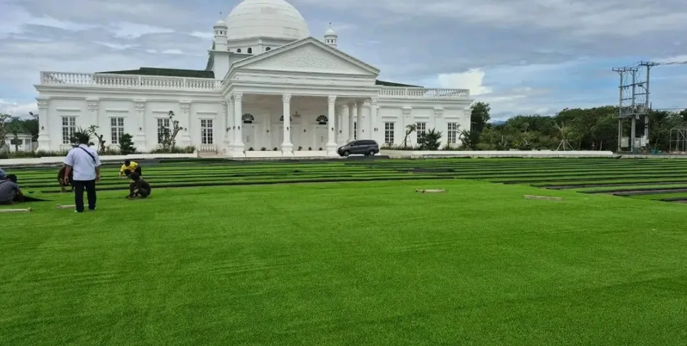 Kota Bengkulu, Siberbengkulu.co -- Halaman Pendopo Merah Putih milik Pemerintah Kota (Pemkot) Bengkulu di Kelurahan Pekan Sabtu kini tampil semakin menarik setelah pemasangan rumput sintetis. Langkah ini dilakukan untuk mendukung pelaksanaan sejumlah acara besar, seperti upacara dan hari-hari besar yang diselenggarakan di kawasan perkantoran Merah Putih.