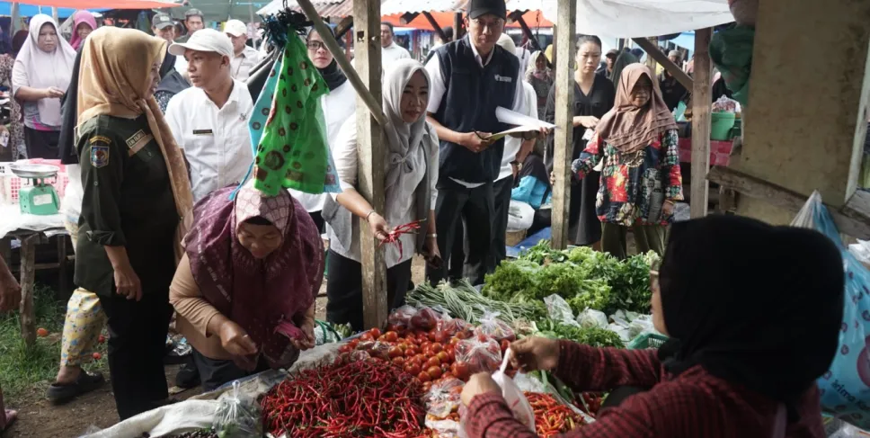 Sidak Pasar dalam rangka pemantauan harga sembako di Kabupaten Bengkulu Tengah berlokasi di Pasar Mingguan Karang Tinggi, Rabu (7/8/2024). (Foto: Burhasin)