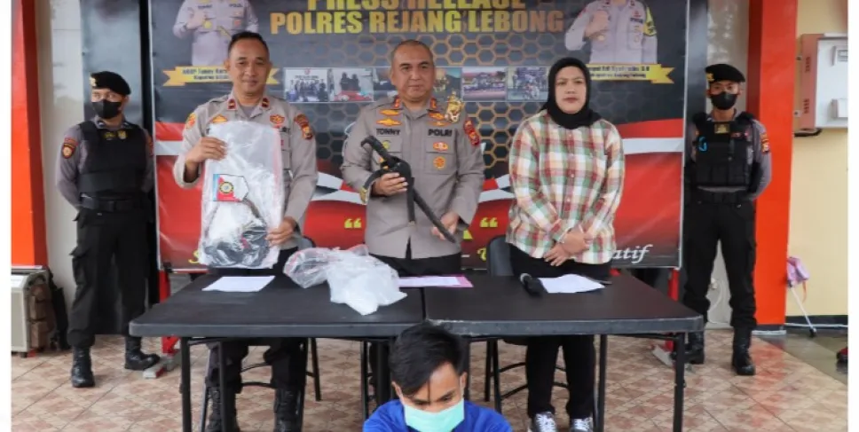 Kapolres Rejang Lebong Polda Bengkulu AKBP Tonny Kurniawan didampingi Kapolsek Bermani Ulu Ipda Sina Alfarobi dan Kasi Humas Iptu Bertha saat menggelar Press Release di Mapolres Rejang Lebong mengatakan, terduga pelaku RH saat ini telah diamankan dan dijerat dengan pasal 2 ayat 1 UU Darurat Tahun 1951 lantaran menguasai senjata tajam yang bukan pada tempat dan profesinya.