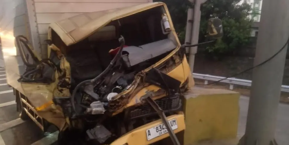 Sopir tersebut kehilangan kendali lalu menabrak pembatas pemisah tol off ramp.